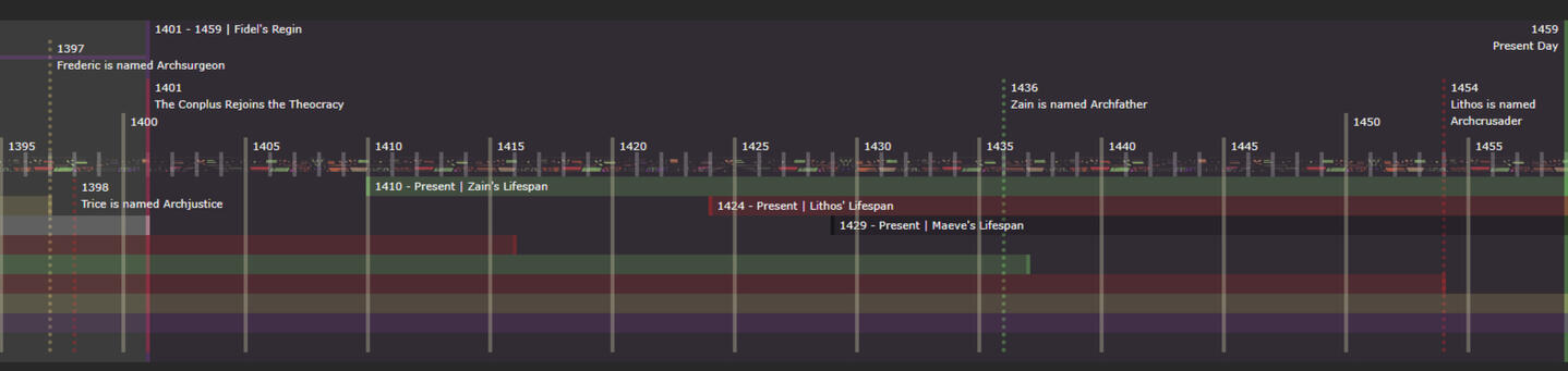 Archclergy are appointed for life and can only be removed through a unanimous excommunication vote or by death, unless they willingly retire. Archclerics are appointed by their predecessor in the case of a retirement, and by the Archteacher in the case of a death.- Due to being half-elf, Frederic has a longer lifespan and thus has been the longest serving Archcleric. His term has lasted 62 years, and is still going despite several attempts to remove him from his position. He refuses to retire out of spite.